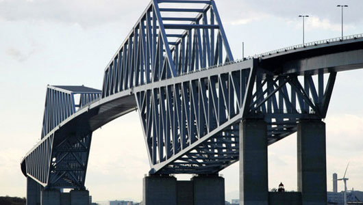 Tuy nhiên, việc xây dựng cây cầu là không hề đơn giản, dù đất nước ấy có là Nhật Bản đi chăng nữa. Bởi vì nó rất gần với sân bay Haneda, các kỹ sư đã phải tốn rất nhiều công sức tính toán và điều chỉnh độ cao của cây cầu để cho phép máy bay cất cánh và hạ cánh xuống sân bay. Mặt khác, nó cũng phải đủ cao để cho phép tàu thuyền đi qua một cách an toàn và nó phải được thiết kế sao cho có thể chịu được một trận động đất mạnh.