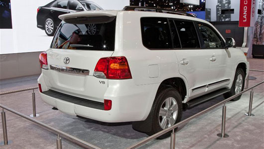 Về ngoại thất, nét khác biệt của bản Land Cruiser 2013 nằm ở cản trước mới, lưới tản nhiệt được thiết kế lại và cặp đèn pha tích hợp đèn LED chiếu sáng ban ngày. Bên cạnh đó còn phải kể đến gương cửa mới được tích hợp đèn báo rẽ. Cụm đèn hậu cũng có hình khối mới. Bộ la-zăng hợp kim thiết kế mới, cỡ 18 inch, phủ bóng, đi cùng lốp P285/60 R18 bố tỏa tròn.