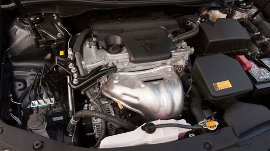 Phiên bản Camry mới nhất được trang bị động cơ V6 3.5 lit 4 xi lanh có mức tiêu thụ nhiên liệu 11 lít/100km khi chạy trong thành phố và 8 lít/100km khi chạy trên đường cao tốc. Công suất động cơ theo đó cũng tăng từ 187 lên 200 mã lực và thời gian tăng tốc từ 0 lên 60 km/h chỉ được tính bằng nửa giây. Toyota đạt được những cải tiến này mà không cần sử dụng đến những công nghệ tốn tiền như phun nhiên liệu trực tiếp, cắt giảm động cơ, hoặc tăng áp. Thay vào đó, hãng dựa vào các thay đổi nền tảng về phần cứng như giảm độ kháng lực cho lốp, thêm trợ lực lái điện tử, tăng chiều dài cơ cấu truyền động hay nâng cấp mô-men.