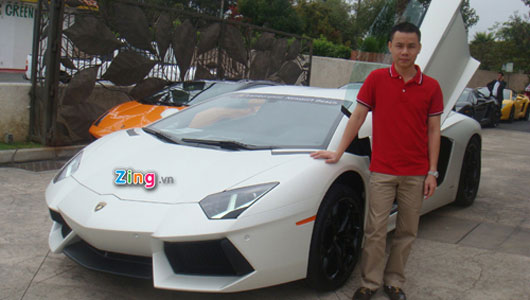 Đại gia 8X Hà Thành, Cường Luxury bên Lamborghini Aventador. Nguồn ảnh: Zing.vn