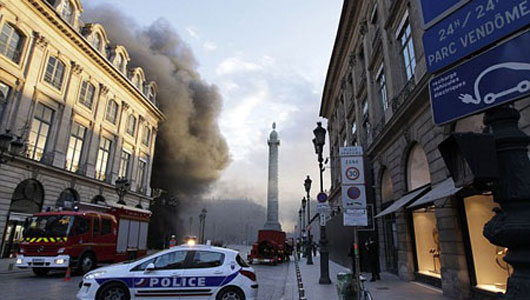 Ngọn lửa dường như xuất phát từ bãi đỗ xe ngầm của khách sạn Ritz gần đó và lan sang bãi đỗ xe ngầm 5 tầng tại quảng trường Place Vendome.
