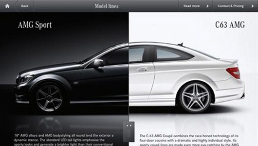 iPad Brochure App cho bạn cái nhìn tổng thể bằng hình ảnh về toàn bộ dòng sản phẩm Mercedes-Benz C-Class mới. Không chỉ đơn thuần cung cấp hình ảnh và từ ngữ mô tả, ứng dụng này cho phép người mua so sánh các mẫu xe cạnh nhau, đồng thời có thể quan sát các xe lựa chọn từ nhiều góc khác nhau.