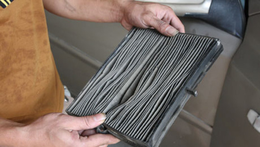 Cách duy nhất để khắc phục là vệ sinh tấm lưới lọc. Trên các dòng xe du lịch hiện đại tay lái thuận, tấm lưới lọc này thường nằm bên trong hốc được bố trí sâu trong hộp đựng găng tay. Có trường hợp chỉ cần mở hộp găng tay, cậy nắp hốc lọc gió là có thể lấy được lưới lọc, có trường hợp phải tháo cả nắp hộp mới có thể thao tác. Dùng súng sịt hơi để thổi sạch bụi bẩn bám trên tấm lưới rồi lắp lại bình thường. Tấm lưới cần được vệ sinh hàng tháng, thậm chí hàng tuần nếu xe thường xuyên được sử dụng ở những nơi nhiều bụi bặm như công trường, đường đất…