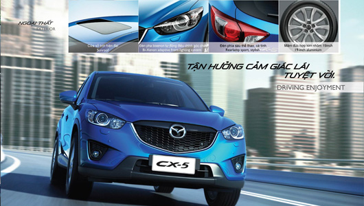 Mazda CX-5 phiên bản 2012, mẫu xe thể thao đa dụng năng động, cá tính của hãng xe hơi Nhật Bản, sẽ được Vina Mazda giới thiệu tại Việt Nam với động cơ xăng 2.0L, hộp số tự động 6 cấp với 2 tùy chọn 1 cầu hoặc 2 cầu.