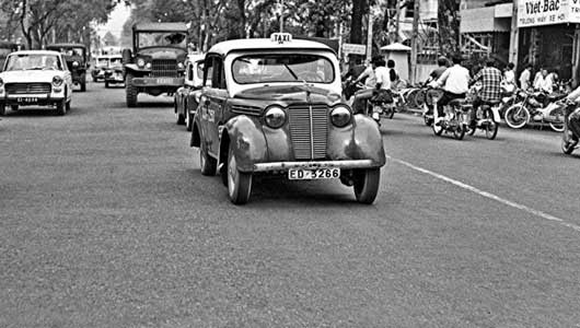 Một chiếc Juvaquatre trên đường phố Sài Gòn trước năm 1975.
