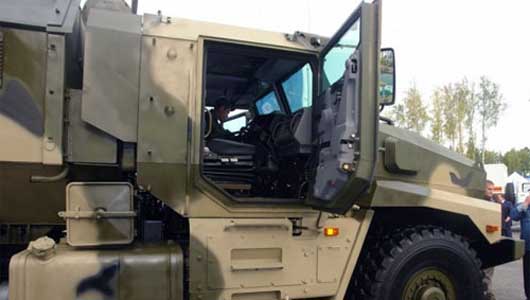 Trong cabin, lái xe ngồi ở bên trái còn trưởng xe ngồi bên phải. Kính chắn gió phía trước đều có khả năng chống đạn.