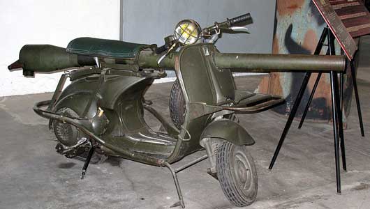 Vespa 150 TAP với 6 viên đạn 75mm treo hai bên hông xe.