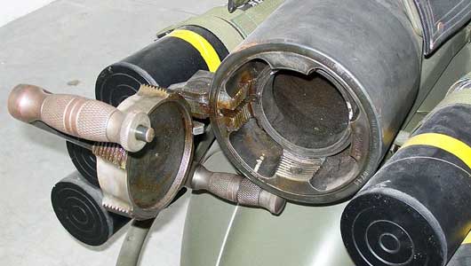 Bệ khóa nòng của pháo không giật M20 75mm trên chiếc Vespa.