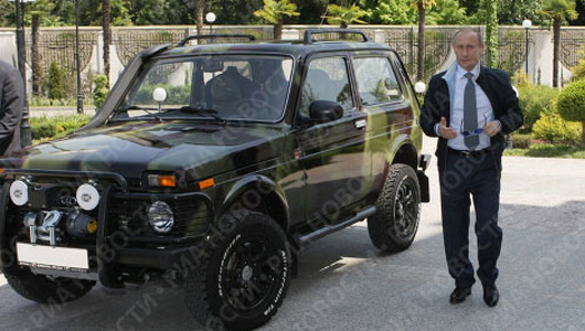 Trong một dịp khác, Putin cũng đã xuất hiện trước các phóng viên khi ông lái chiếc Niva mới màu ka-ki của nhà sản xuất xe hơi lớn nhất Nga Avtovaz.