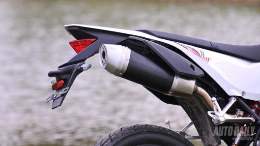 Chiếc xe được trang bị hệ thống giảm xóc đặc trưng của dòng xe cào cào. Giảm xóc trước có hành trình lớn, giảm xóc sau dạng monosock khiến chiếc xe có thể dễ dàng “leo” lên những bậc hè cao trong phố. Pô xe có âm thanh không ấn tượng, nhưng bù lại, nó được bố trí cao, nằm sát dưới dè phía sau. Vị trí này khiến người điều khiển Generic TR125 SM có thể yên tâm vượt qua những con phố ngập nước sâu.
