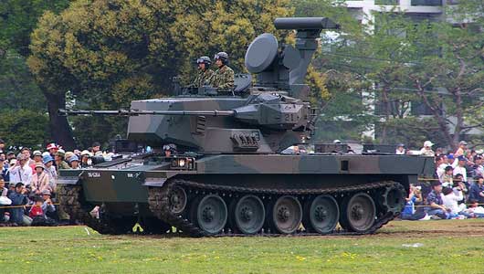 Xe pháo phòng không tự hành Mitsubishi Type 87. Cũng là pháo tự hành nhưng vai trò của Type 87 là để chống máy bay.