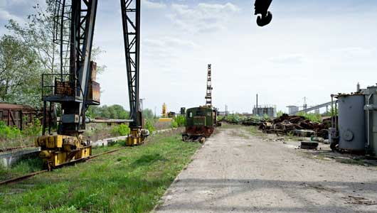 Đây là đường ray tàu hỏa chuyển tăng cần sửa chữa đến nhà máy, trước 1991 nơi đây có lẽrất nhộn nhịp, nhưng giờ thì chỉ còn là hình ảnh hoang tàn