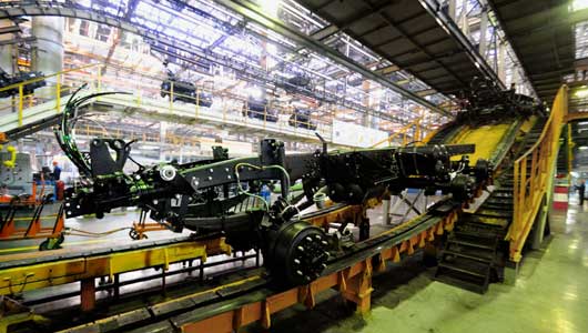Một bộ khung thân xe vận tải Kamaz trên dây chuyền lắp ráp