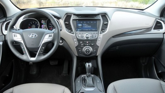 Nội thất của Santa Fe 2013 đã có sự tiến bộ vượt bậc trong thiết kế và được đánh giá rất cao. Đó thực sự là một cuộc cách mạng về phong cách khi hãng đã thay đổi lại toàn bộ phần điều khiển trung tâm, giúp chúng trông sành điệu hơn rất nhiều. Nửa trên bảng điều khiển được phủ bởi lớp vỏ nhựa cao cấp với bề mặt nổi vân, còn nửa dưới thì làm bằng nhựa cứng thông thường.