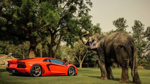 >> Xem ảnh chi tiết "siêu bò tót" Aventador và voi rừng