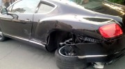 Vụ va chạm đáng tiếc xảy ra tại Trung Quốc đã khiến siêu xe Bentley Continental GT trị giá gần 200.000 USD (tương đương khoảng 4 tỷ VNĐ) hư hỏng nặng phần đuôi với cả hai bánh sau bung ra.
