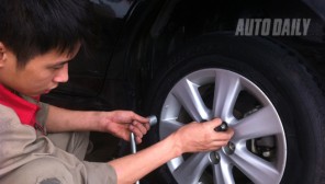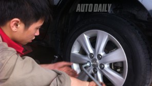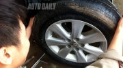 Nâng kích và xoay thử bánh xe vài vòng để kiểm tra thao tác lắp có gì sai sót không. Nếu bánh xe quay êm và bon là được.Từ từ hạ hết kích và tháo kích ra. Xiết chặt tất cả đai ốc khít nhất có thể.