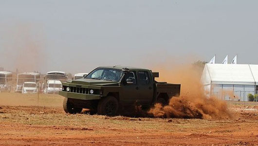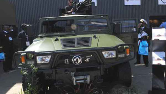 Những năm gần đây, các công ty quốc phòng Trung Quốc xuất hiện ngày một nhiều tại cáctriển lãm quốc phòng nhằm tìm kiếm cơ hội xuất khẩu những sản phẩm của nước này. Trongảnh, xe đa dụng hạng nhẹ nhìn khá giống chiếc Đông Phong EQ2050 mà nước này sao chép từ loại Humvee của Mỹ.