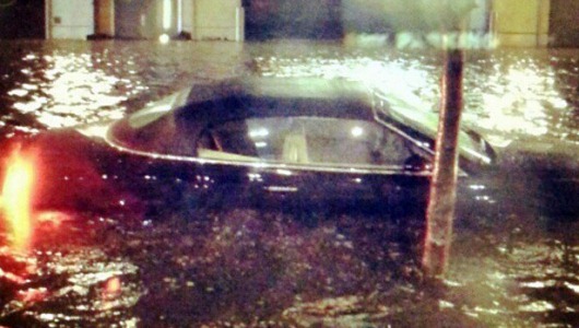 Cơn bão đã nhấn chìm nhiều thứ, nhưng thật không may, trong đó lại có cả một chiếc Bentley Continental GTC Convertible. Chủ nhân của chiếc Bentley này có lẽ đã bỏ của chạy lấy người bởi nước dâng lên quá cao và thực sự, người ta không thể lái xe trên một dòng sông như vậy được.