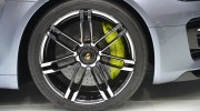 Màu xanh metan lỏng mang lại cho chiếc xe một khái niệm bề mặt tương tự như kim loại lỏng và làm nổi bật đường nét và các đường nét thiết kế rõ ràng. Các bánh xe trong thiết kế chấu kép có hai màu, và bộ kẹp phanh được sơn màu Acid Green. Các ổ khóa trung tâm của bánh xe gợi lại nguồn gốc của tất cả các Porsche là xe thể thao. Phù hiệu "E-hybrid" ở hai bên đề cập đến khái niệm vận hành của xe, trong khi tên "Sport Turismo" ở phía sau, cũng được sơn màu xanh Acid, nhấn mạnh tính concept của xe. Bộ phận chứa pin bằng nhôm tái chế được đặt dưới sàn của khoang hành lý, được làm bằng thủy tinh mạ crom tĩnh điện và hé mở một cái nhìn của nguồn năng lượng được sơn màu Acid Green ở nút điều khiển.