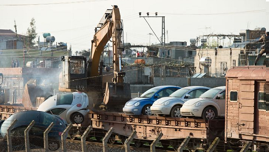 Những chiếc VW con bọ bị nghiền nát trên xe lửa
