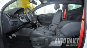 Điểm nhấn trong không gian nội thất của Megane RS là màu đen sơn mài của bảng điều khiển trung tâm và cửa gió điều hoà kết hợp với màu than của bảng điều khiển tại cánh cửa càng tôn dáng vẻ thể thao cho Mégane RS.
