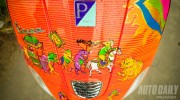 Lớp nền đầu tiên là những đường kẻ ngang màu vàng, gợi liên tưởng tới những đường gân đặc trưng của loại giấy dó. Sau đó, những bức tranh Đông Hồ nổi tiếng như "Đám cưới chuột", "Vinh hoa", "Phú quý" được lên thân xe.