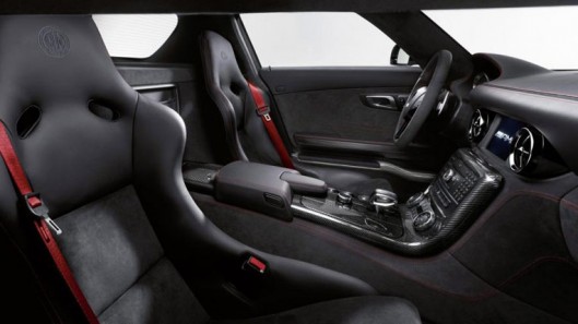 SLS AMG Black Series có khối lượng tịnh 1.550kg, nhẹ hơn 70kg nhờ sử dụng công nghệ sợi carbon. Bộ khuếch tán gió phía trước và sau đều bằng vật liệu sợi carbon, còn hệ thống ống xả làm bằng ti-tan, có khối lượng 17kg, nhẹ hơn13kg so với hệ thống nguyên bản trên xe SLS AMG GT.