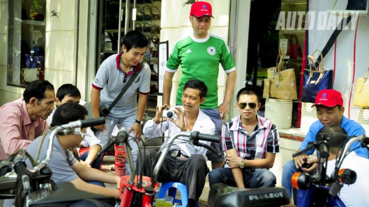 Nhiều thành viên trong CLB Moped Hà Nội được ông Nhạc hỗ trợ sửa xe