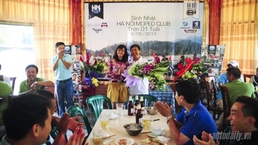 Tham dự Lễ sinh nhật 1 tuổi Moped Hà Nội là đông đủ các thành viên trong CLB, bao gồm cả các thành viên nổi tiếng như nhà văn Chu Lai, nghệ sỹ Hồng Kỳ, cùng các khách mời đến từ CLB Moped Sơn Tây.