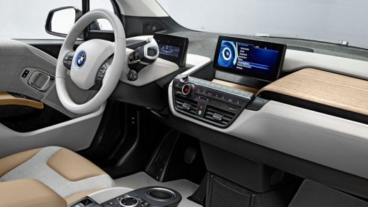 Không gian nội thất của BMW i3 cho thấy sự thân thiện với môi trường khi được trang bị da, gỗ, len được xử lý một cách tự nhiên và các chất liệu thô có thể tái chế cũng như phục hồi. BMW i3 có 3 phiên bản khác nhau gồm Loft, Lodge và Suite, thậm chí bản tiêu chuẩn được trang bị khá đầy đủ với điều hòa không khí, kết nối USB/Bluetooth/SIM Card và màn hình hiển thị iDrive 6.5 inch. Những tùy chọn bao gồm định vị GPS, kiểm soát nhiệt độ tự động, ghế ngồi trước có chức năng sưởi và cửa sổ trời bằng kính vận hành điện tử.