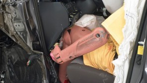 IIHS cho biết, sau bài thử nghiệm đâm trực diện góc nhỏ, chân trái của người nộm bị kẹt trong chỗ để chân với những tấm kim loại móp méo. Dữ liệu cho thấy nếu là người thật có thể sẽ bị thương nặng ở cẳng chân.