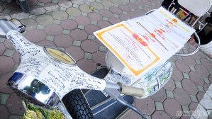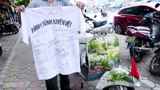 XEM ẢNH CHIẾC VESPA CÓ 800 CHỮ KÝ CỦA CÁC NHÀ BÁO