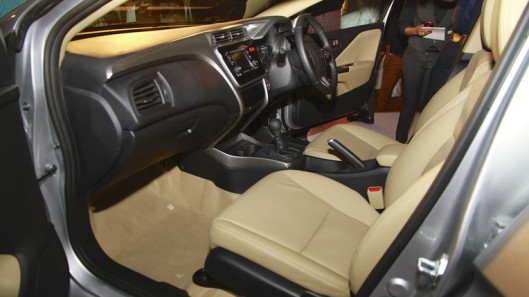Không gian nội thất của Honda City mới được làm lại gần như hoàn toàn. Với cửa sổ trời, chìa khóa thông minh nút bấm khởi động, điều hòa tự động, cụm đồng hồ đa thông tin, hệ thống thông tin giải trí 8 loa, màn hình cảm ứng 5 inch, khe gió điều hòa sau và camera quan sát sau, Honda City mới là một trong những mẫu xe được trang bị tốt nhất phân khúc. Ghế ngồi trước mang lại cảm giác thoải mái cho hành khác, còn hàng ghế sau cũng được điều chỉnh, tạo nhiều không gian hơn.