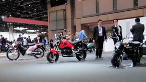 Gian hàng xe máy sẽ trưng bày các mẫu xe hấp dẫn bao gồm một số mẫu xe có kế hoạch sản xuất như Dunk, một mẫu xe ga phong cách mới 50 cc trang bị động cơ làm mát bằng dung dịch và mẫu CB1300 SUPER BOL D’OR có các tiện ích mới như đèn pha LED và hộp số 6 cấp.