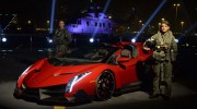Mặc dù Lamborghini Veneno Roadster xuất hiện vào tháng 10, nhưng mãi đến 1/12, siêu xe đình đám này mới lần đầu ra mắt khách hàng tiềm năng trên chiếc tàu sân bay Nave Cavour tại cảng Mina Zayed của Abu Dhabi, Các Tiểu vương quốc Ả Rập Thống nhất.