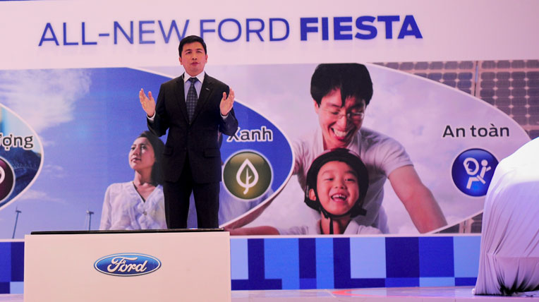 TGĐ Ford Việt Nam Jesus Metelo Arias 'Met' phát biểu tại gian hàng Ford ở Triển lãm Ôtô Việt Nam diễn ra vào tháng 10/2013 đồng thời giới thiệu tới giới truyền thông về mẫu xe Fiesta 2014 hoàn toàn mới.