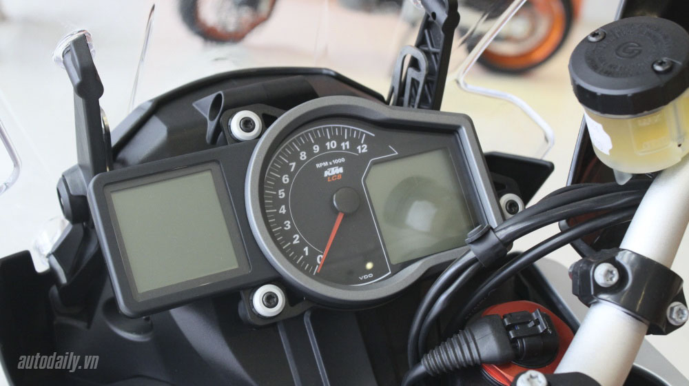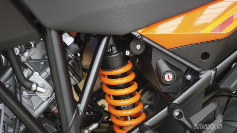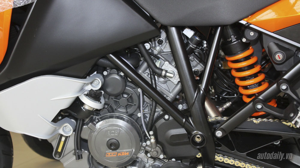 Động cơ V-Twin của KTM 1190 Adventue, xe có chiều cao yên 860mm, độ cao gầm 220mm