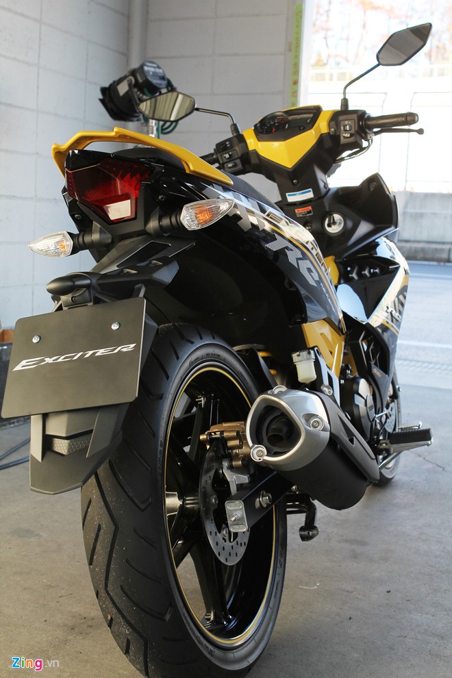 Xe vẫn sử dụng phuộc sau dạng lò xo trụ đơn, vành đúc, phanh đĩa cho cả bánh trước và bánh sau. Exciter 150 sử dụng hộp số 5 cấp, trong khi động cơ 150 phân khối được cho sản sinh công suất tối đa 16 mã lực. Trao đổi vớiZing.vn, đại diện Yamaha Việt Nam cho biết, Exciter 150 sẽ ra mắt giữa tháng 12 này.