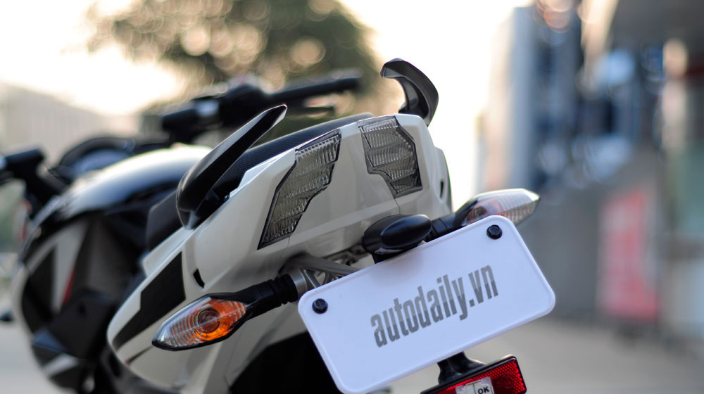 Đuôi xe trông rất thể thao khi được làm vuốt nhọn vểnh cao kết hợp yên sau solo tách biệt với yên lái được đặt lõm xuống dưới ôm lấy bình xăng. Cụm đèn hậu được sử dụng đèn LED với thiết kế nhỏ gọn liền mạch với đuôi xe, 2 đèn xi-nhan đặt tách rời giống như trên những chiếc xe thể thao phân khối lớn.