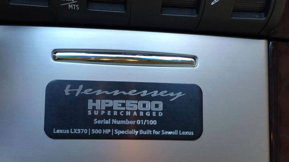 Chiếc Lexus LX570 Supercharged mang số thứ tự đầu tiên trong tổng số 100 chiếc trên toàn thế giới được trang bị gói độ của Henessey Performance với sức mạnh 500 mã lực.