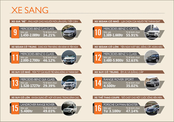 Danh sách 16 mẫu xe được Ofers yêu thích nhất tại Việt Nam năm 2014: