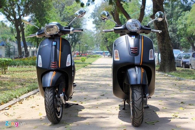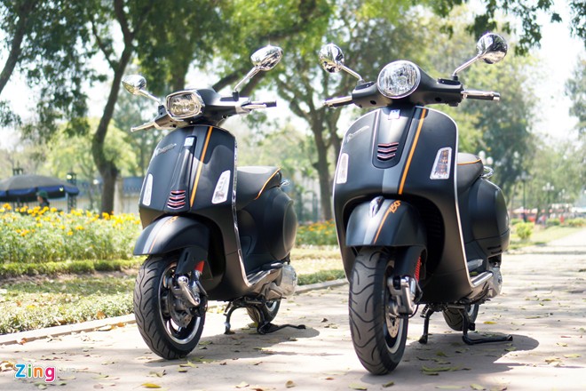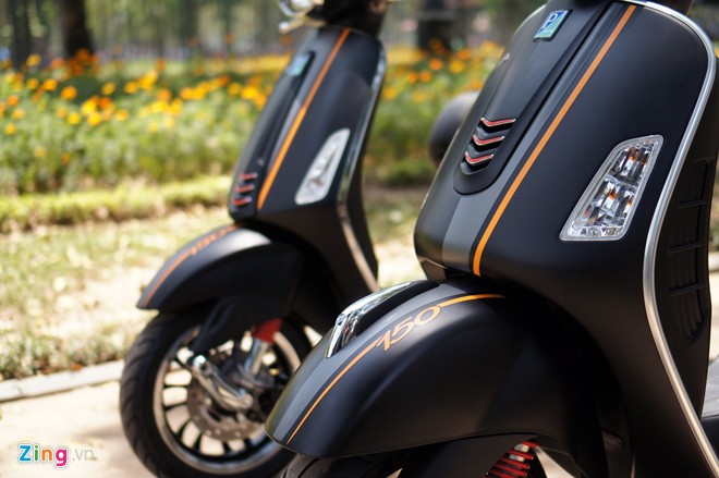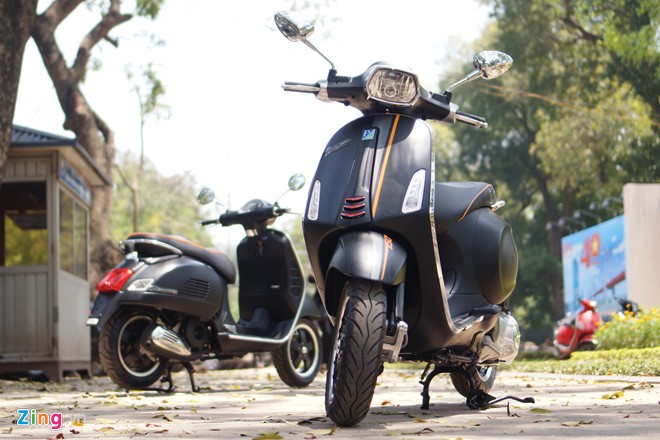 Vespa Sprint 150 và GTS Super 150 phiên bản màu sơn đen mờ mới ra mắt có điểm nhấn ở những chi tiết màu cam và đỏ, làm tăng tính thể thao.