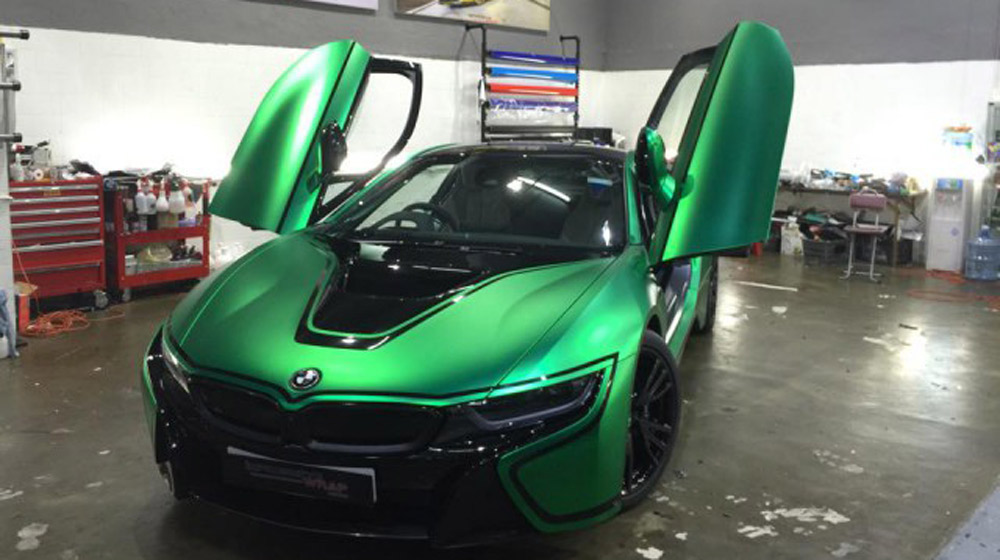 Thêm một số hình ảnh về BMW I8 sơn matte xanh mạ chorme: