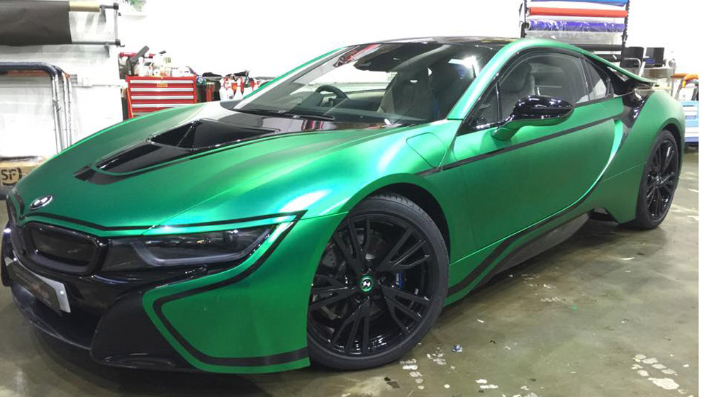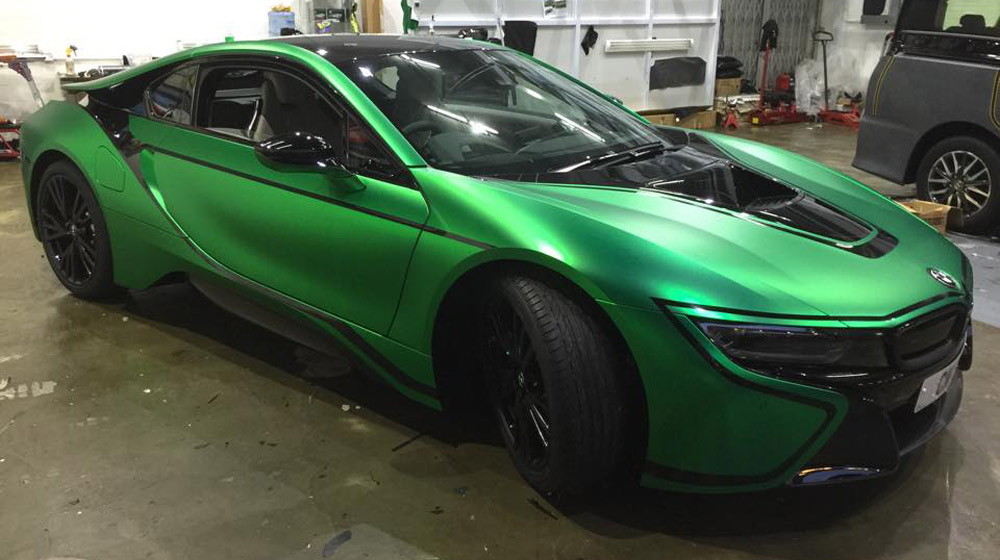Chiếc BMW I8 có màu xanh matte mạ chorme độc đáo thuộc sở hữu của 1 dân chơi có tiếng tại Hong Kong.