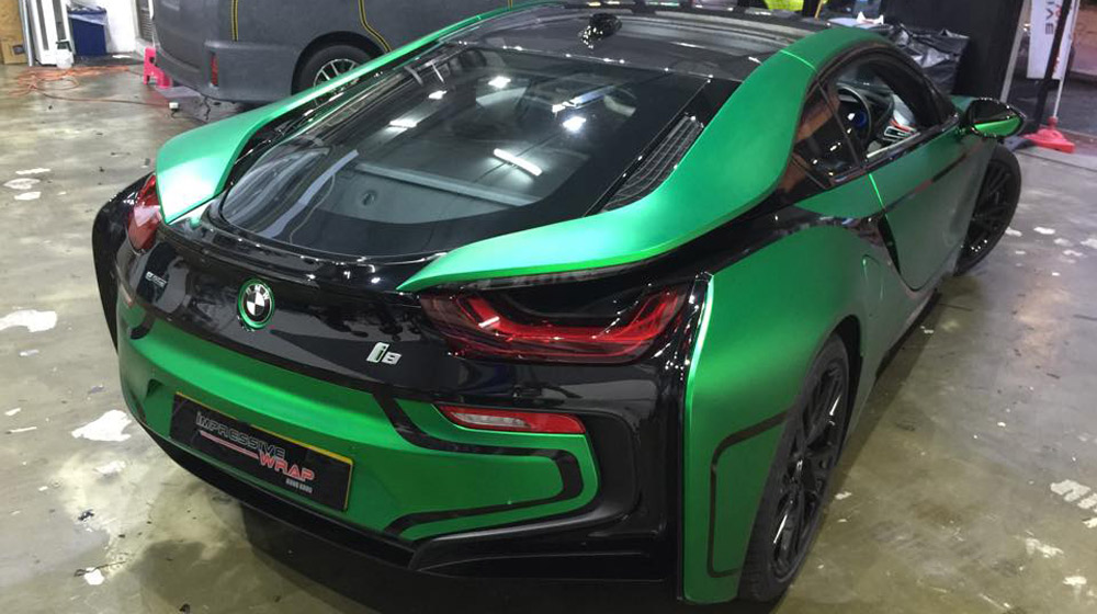 Có thể đánh giá đây là một trong những chiếc i8 có màu sắc sặc sỡ nhất từ trước đến nay. Màu xanh matte được phủ thêm một lớp chorme bóng bên trên càng làm xe thêm nổi bật. Ngoài ra, một số chi đường nét màu đen kết hợp cùng cũng một phần tạo nên sự ấn tượng cho xe. Các chi tiết đó bao gồm cản trước, lưới tản nhiệt, một phần nắp capô, 4 bộ mâm và một phần cản sau…