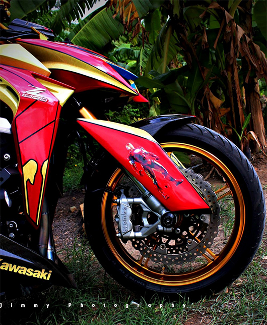 Chiếc Kawasaki Z1000 mang phong cách người sắt trong phim Iron Man với tem màu đỏ vàng là chủ đạo..jpg)