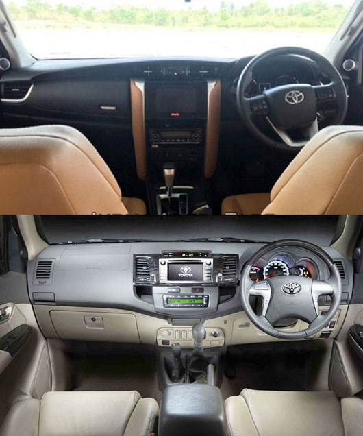 Không còn bảo thủ như trước kia, thiết kế của Toyota Fortuner 2016 (ảnh trên) mượt mà và bóng bẩy hơn nhiều so với người tiền nhiệm.