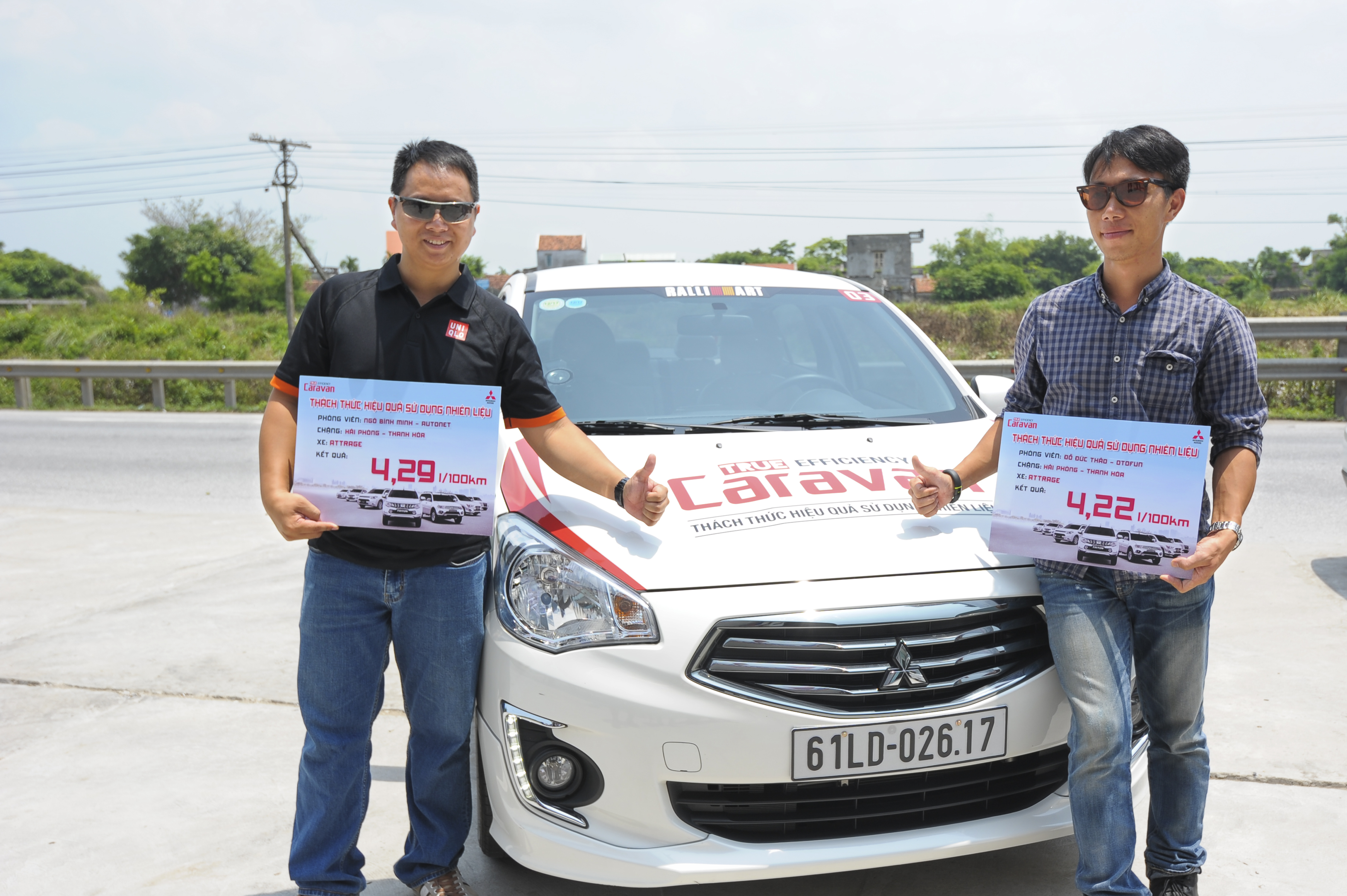 “Đường Hải Phòng nhỏ mà xe thì đông, muốn lái tiết kiệm cũng khó…”. Vậy mà kết quả đã cho thấy chẳng điều gì có thể làm khó Attrage: 4.22L/100km so với mức công bố 4.7L/100km. Trực tiếp thử thách xe là anh Ngô Bình Minh (PV báo Autonet) và anh Đỗ Đức Thảo (PV Otofun).