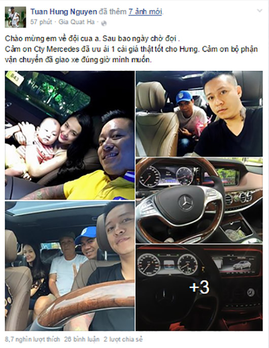 Chia sẻ trên trang facebook cá nhân của mình, nam ca sỹ này đã tỏ ra rất hạnh phúc sau khi tậu riêng cho mình chiếc xe mơ ước mà anh mong muốn bấy lâu nay. Ngoài ra, anh cũng đã gửi lời cảm ơn đến công ty Mercedes-Benz Việt Nam vì đã hỗ trợ anh nhanh chóng hoàn thành thủ tục cũng như ưu ái cho anh một mức giá hấp dẫn nhất..jpg)